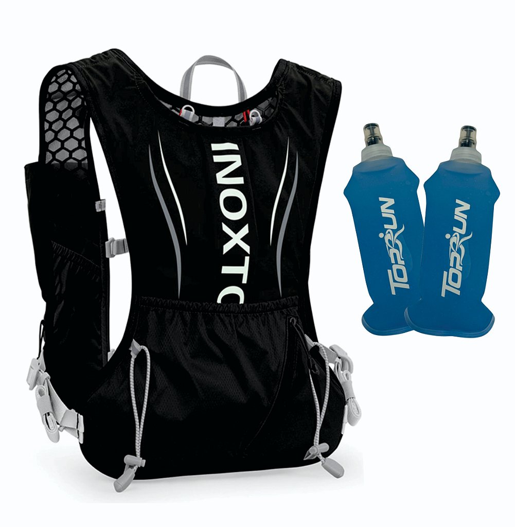 Peso: 180g/6,3 oz Lista de pacotes: 1 mochila de hidratação de 5 L 2 garrafas de água macia de 350 ml